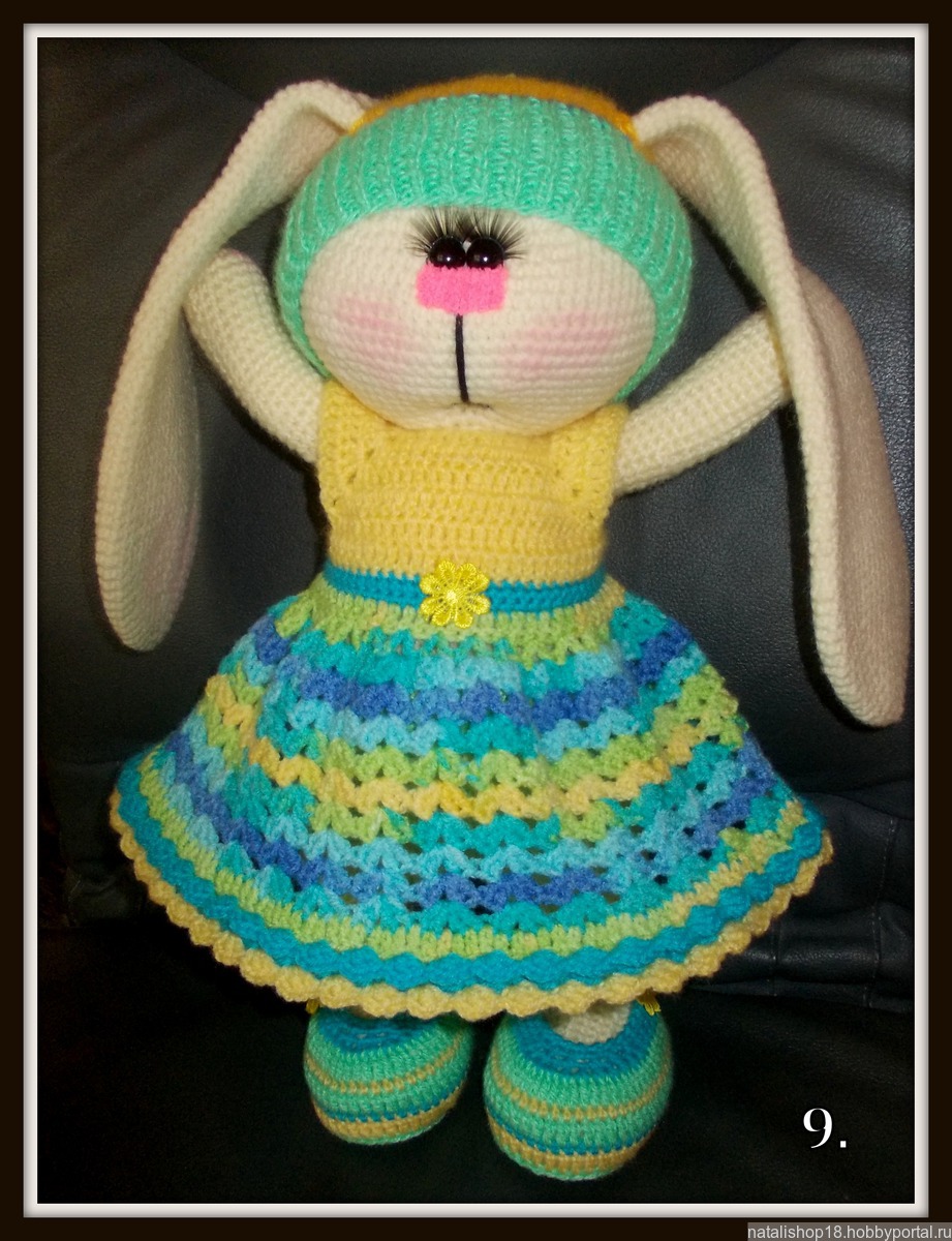 Вязаная зайка – это оригинальная, милая и обворожительная игрушка, выполняющаяся из полушерсти, акриловой пряжи и синтепуха. Зайка самостоятельно стоит, сидит, ручки и ножки подвижны. Одежда полностью снимается. Такая игрушка украсит ваш дом или станет оригинальным подарком не только ребенку, но и взрослому, которые с удовольствием примут в дар такой памятный сувенир.
