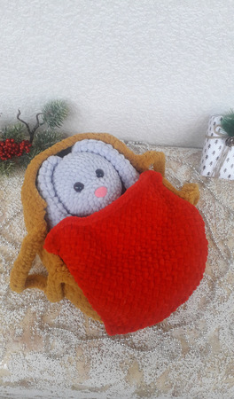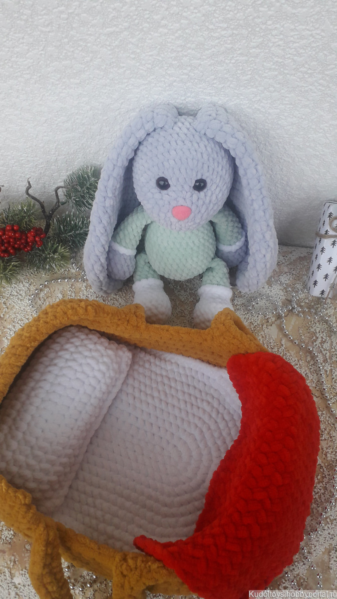 В комплект входит : люлька, матрасик, подушечка, одеялко, ну и сама зайка, конечно же!