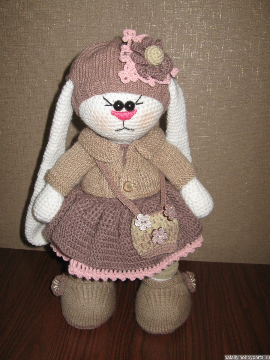 Зайка в стиле тильда. Рост 38 см. Стоит и сидит самостоятельно. Вся одежка снимается. В комплект одежки входят: штанишки, платье, кофточка, шапочка, туфельки и сумочка. Оригинальная идея создания игрушки принадлежит Бэле Макаевой.
