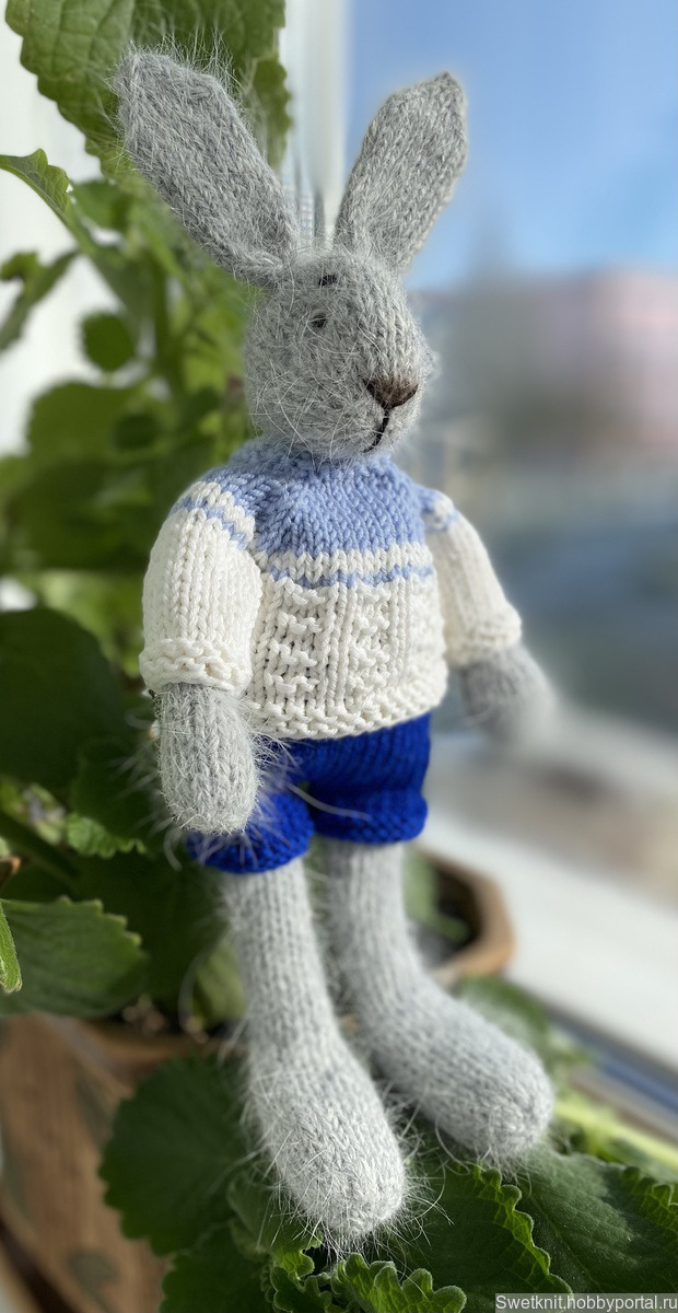 Трудолюбивый зайчик ручной вязки. Размер 30 см