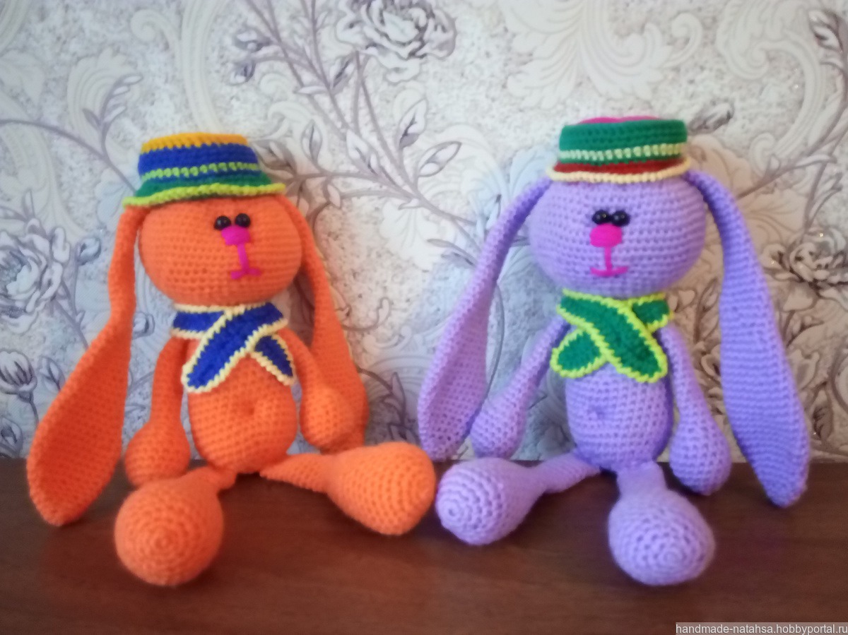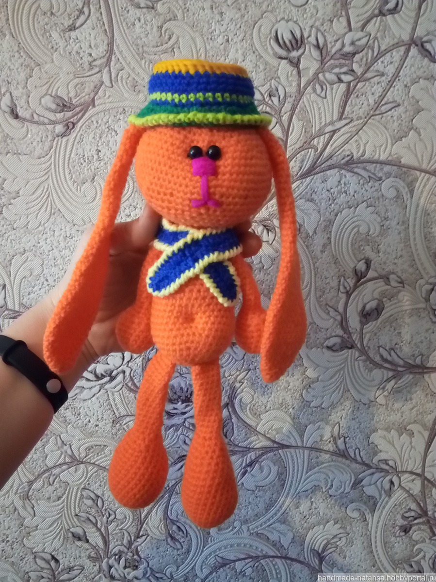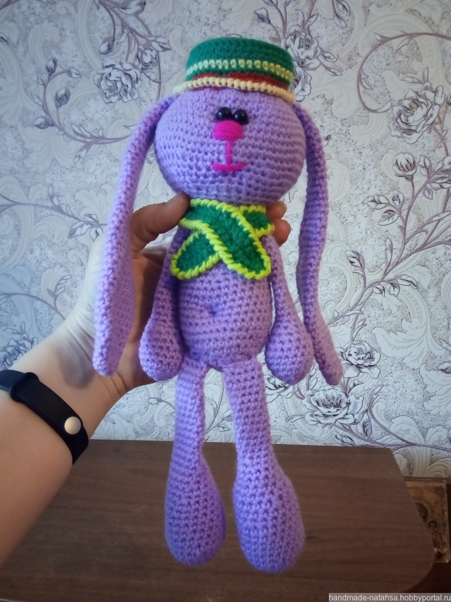 Заяц связан из детской пряжи, наполнитель - холлофайбер. Возможно исполнение в любом цвете.