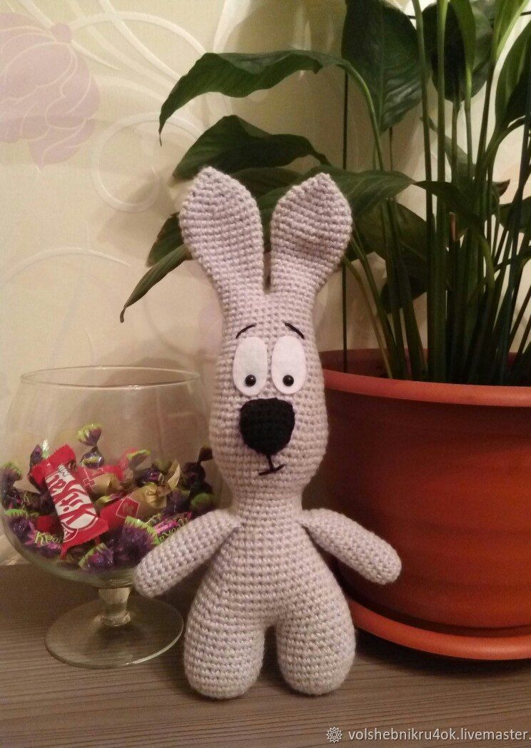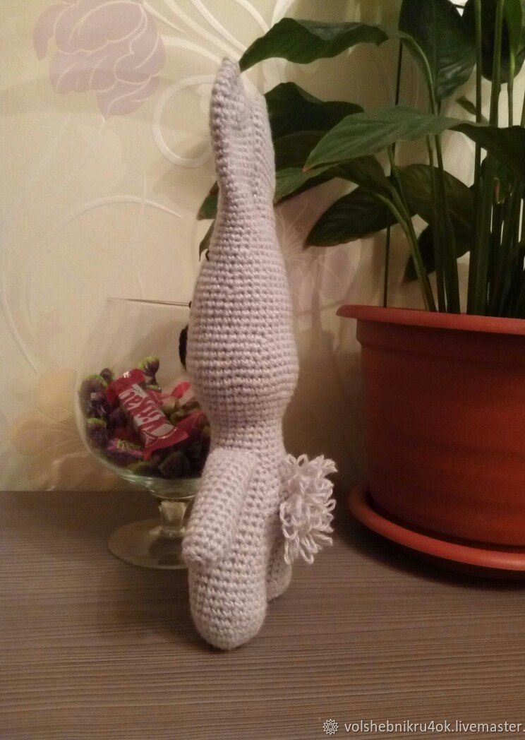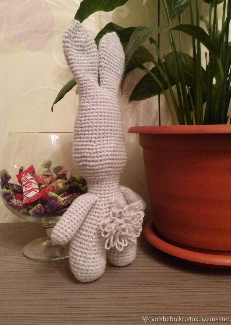 вязаная игрушка, серый, белый, подарок на день рождения, ручная работа, заяц, подарок девушке, подарок, подарок на любой случай, черный, вязаный заяц, игрушка заяц, серый цвет, игрушка своими руками, заяц крючком, зайчики, игрушки на заказ, подарок без повода, ушки зайчика, заяц-косой