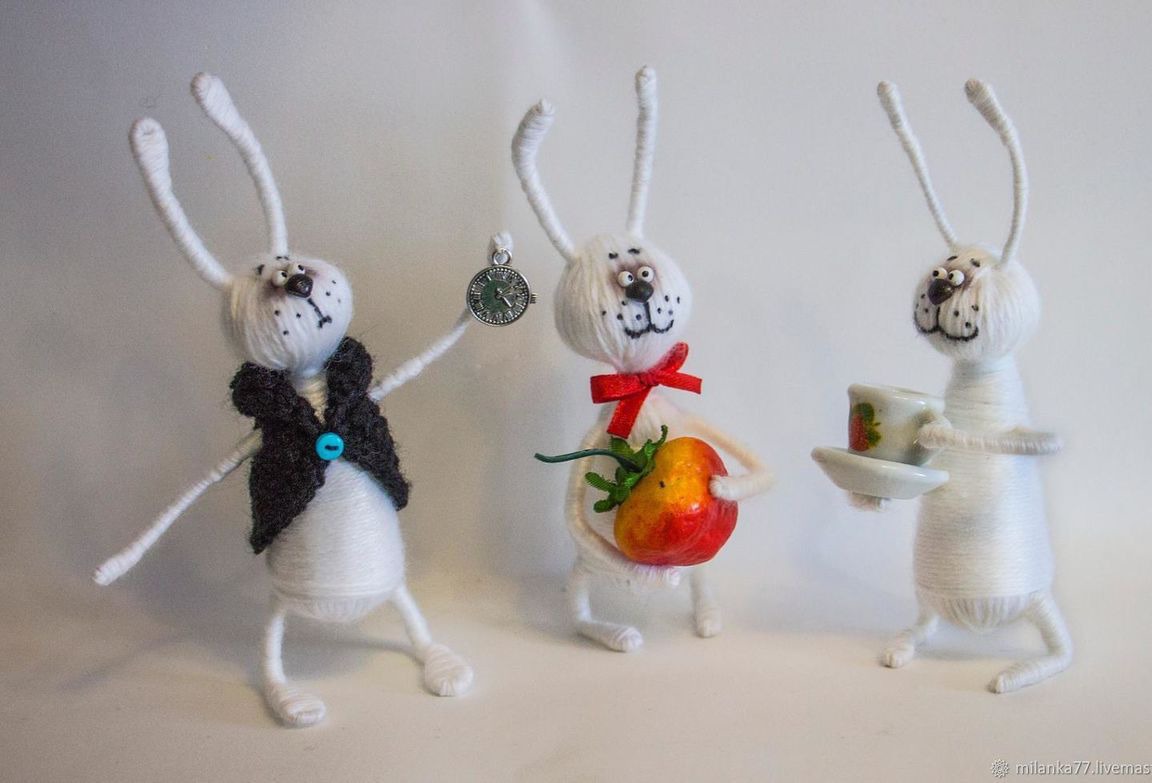 Заяц в технике мотание. Зайка-мотанька. Интересный вариант игрушки, которая подходит, как для интерьера, так и для офиса. Ей вполне можно играть и детям. Аксессуары в лапки могу дать любые, по вашему желанию. Цвет любой, по вашему заказу.