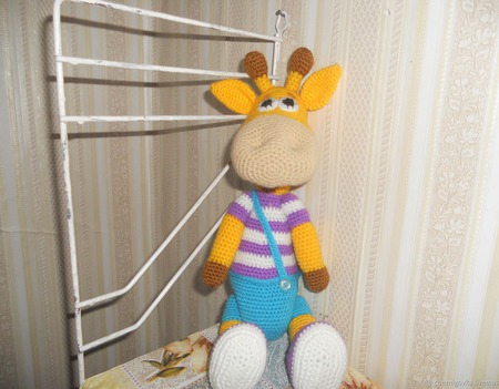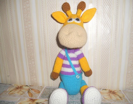 Вязаная игрушка Жираф понравится и ребенку для игры и взрослому в качестве украшения интерьера.