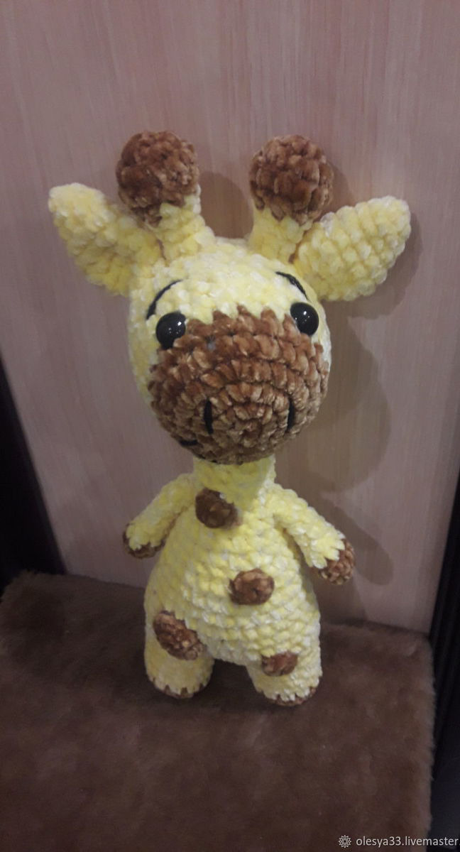 Желтый жираф связан из плюшевой пряжи.Мягкий,приятный на ощупь.