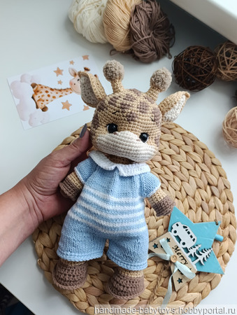 Вязаный Жирафик?.. размер игрушки 28 см с учётом рожек...вся одежда снимается...(можно выбрать любой вариант игрушки для мальчика или девочки)