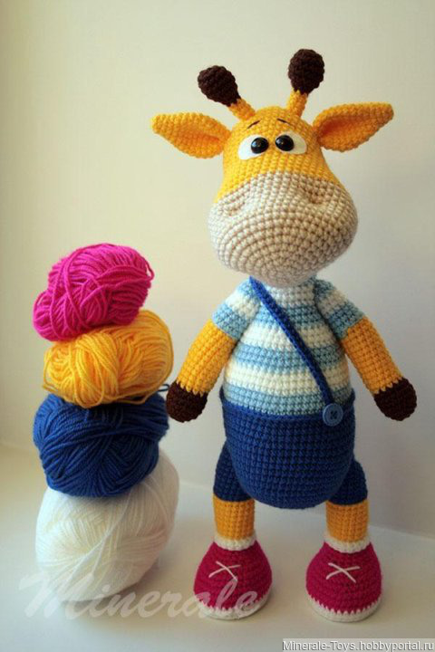 Продам жирафика, он очень рослый товарищ - 35 см. Материалы: детский акрил, холлофайбер, фетр, безопасные глазки, пуговицы. Ручки и ножки подвижны. По схеме М. Устюшкиной.