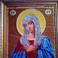 Икона Смягчение злых сердец выполнена из чешского бисера
