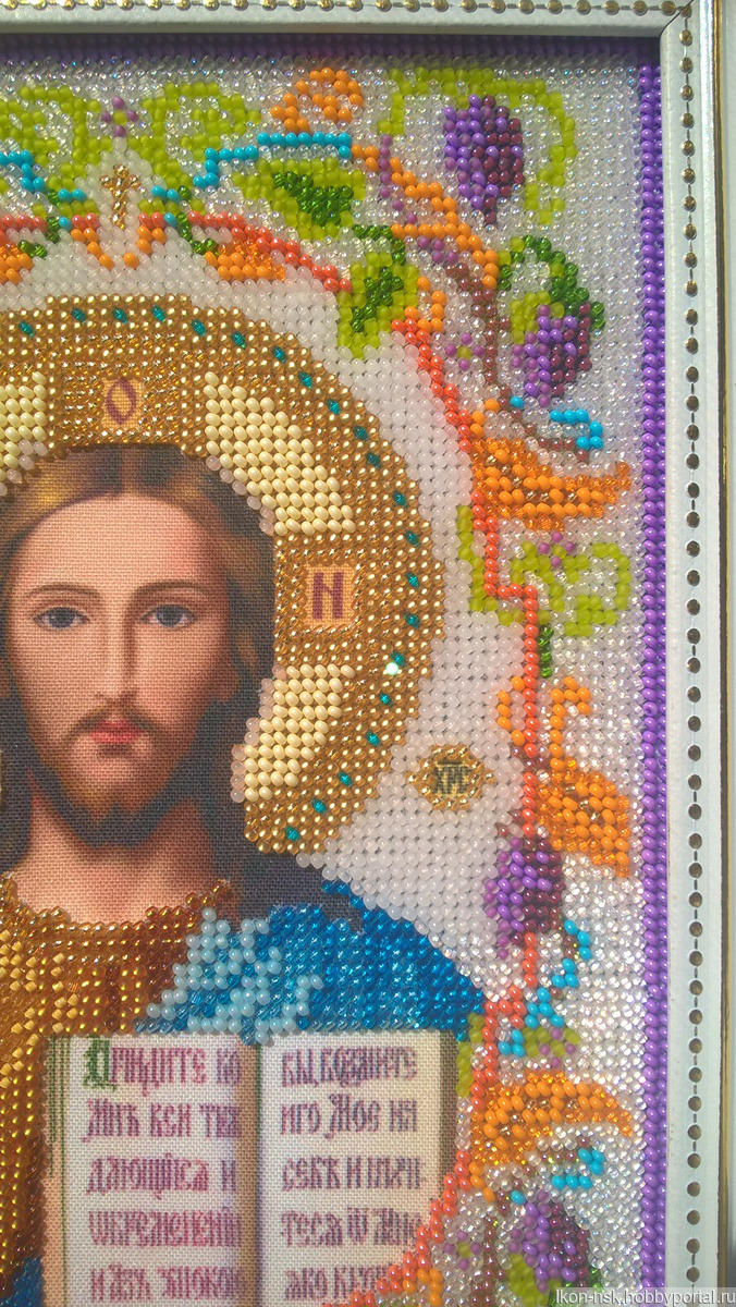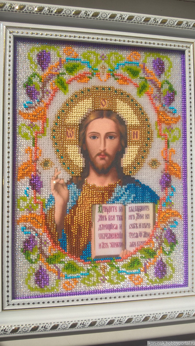 Икона выполнена качественным чешским и японским бисером. Получено благословение на вышивку. Вышивалась икона с любовью и старанием. Обрамлена в багетной мастерской под музейное стекло.