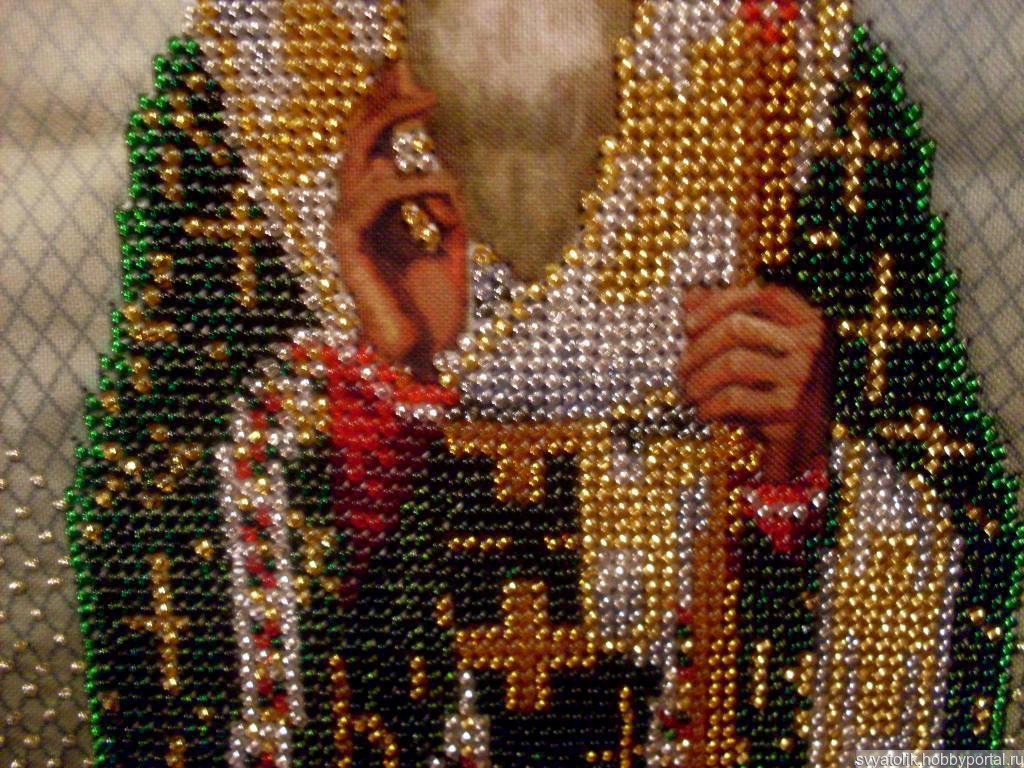 икона в багете, икона в подарок, икона ручной работы, икона вышитая бисером