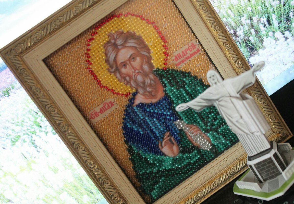 бисер, вышивка бисером, вышивка, подарок, подарок на крестины, икона, крестины, атлас, бисер чешский, святые, христианство, схема бисером, тагер, святой, андрей, набор бисером, крестный