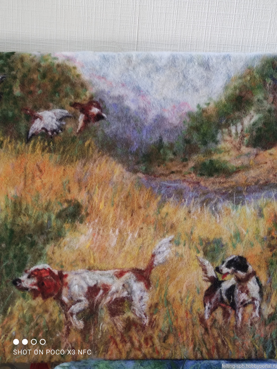 подарок на день рождения, подарок охотнику или рыболову, картины и панно, охота на уток, интерьерные картины, валяные картины