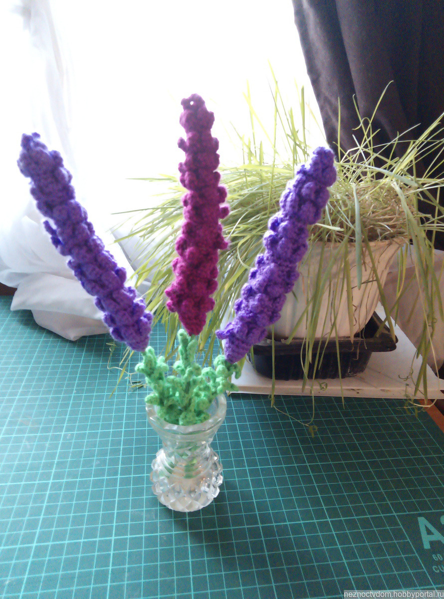 3 веточки лаванды, связаны крючком из пряжи Пехорка