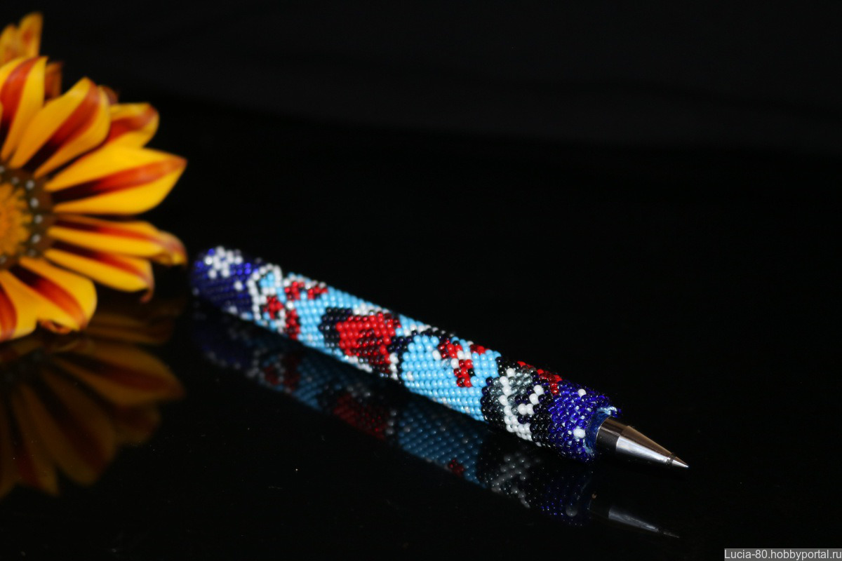 Ручка со съёмным бисерными чехлом. Рисунок в виде снегирей, рябины и снежинок. Очень красивая ручка антистресс станет идеальным подарком для ваших близких.
