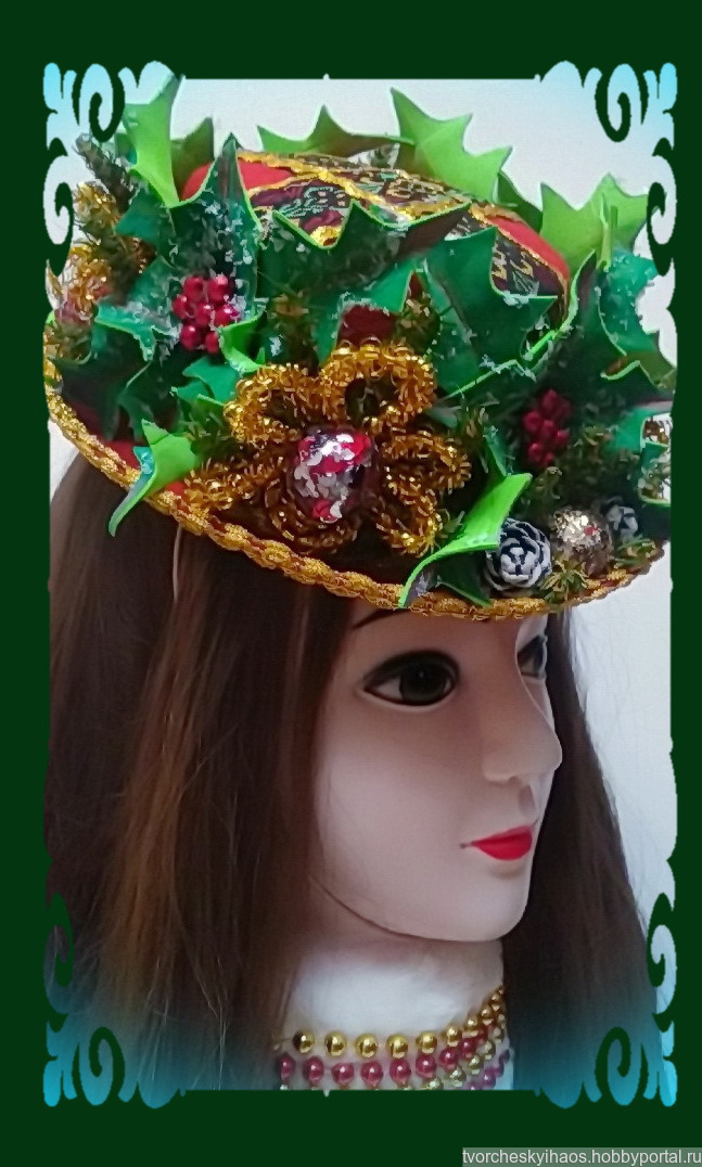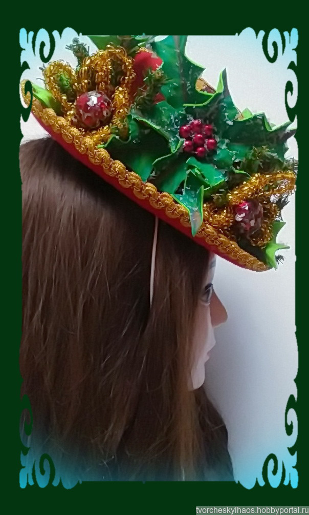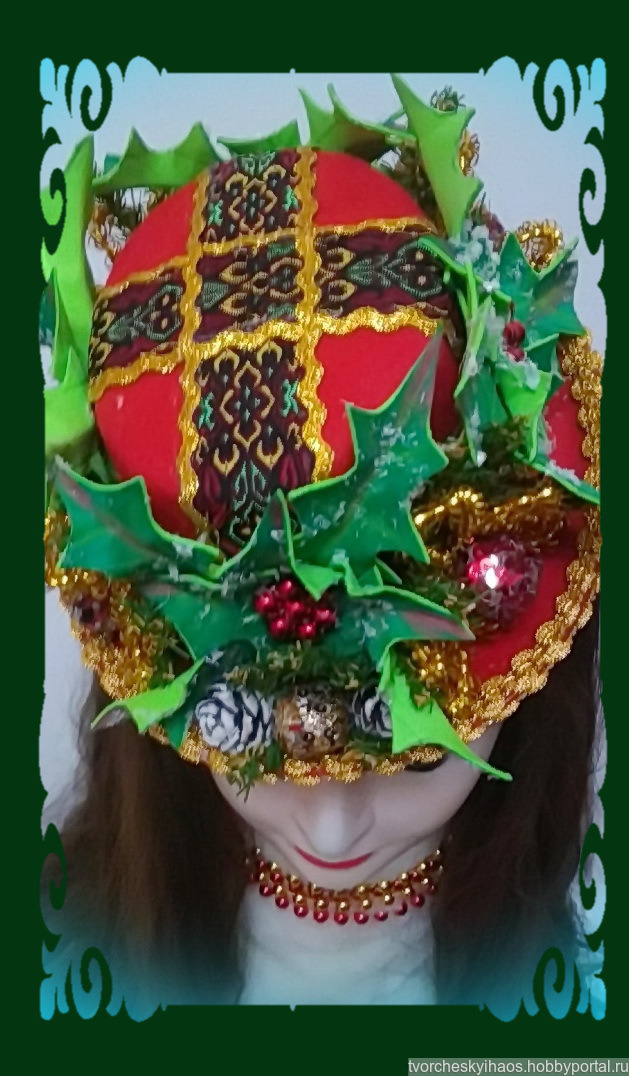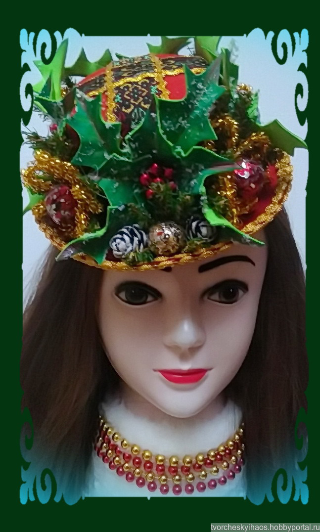 Маленькая, но стильная карнавальная шляпка, украшенная в традиционном рождественско-новогоднем стиле. Основным акцентом декора являются искусственные остролисты, выполненные из бархатного фоамирана путём ручной формовки. На голове шляпка держится за счёт тонкой резинки телесного цвета. Носить её рекомендую, кокетливо сдвинув на одну бровь. И можете не сомневаться: придя в такой шляпке на новогодний корпоратив, вы не останетесь незамеченной! ???Шляпка также подойдёт и для девочек на утренник в школе, детсаду или развлекательном центре.???