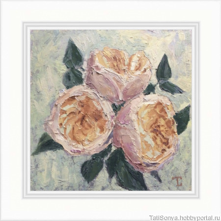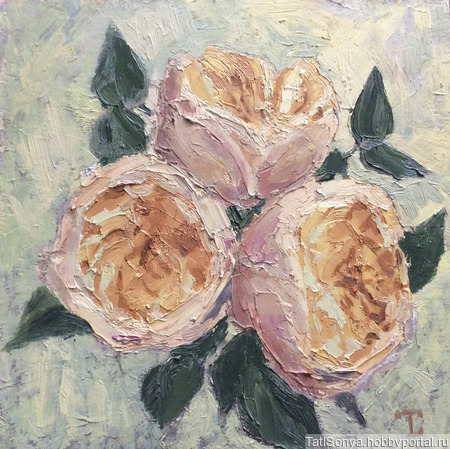 -Картина маслом "Розы в жёлтых тонах", импасто (объёмные мазки).