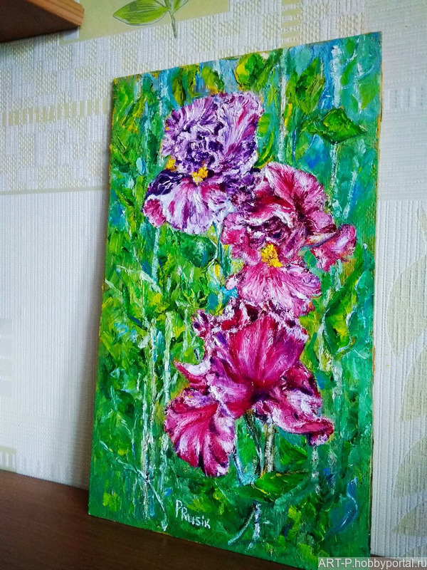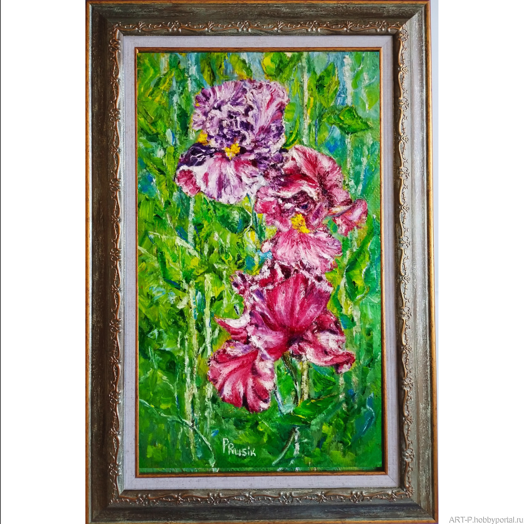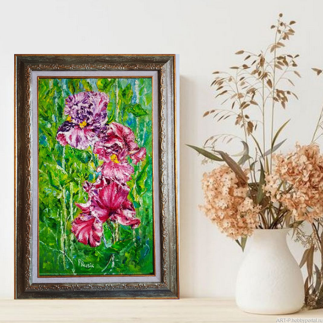 цветы, для интерьера, картина в подарок, ирисы, картина с цветами, картина маслом, художник любовь прусик