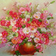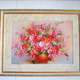 Композиция с букетом разноцветных космей вышита лентами из натурального шелка. Основа - габардин. Работа оформлена в симпатичную рамку с мраморным паспарту без стекла.