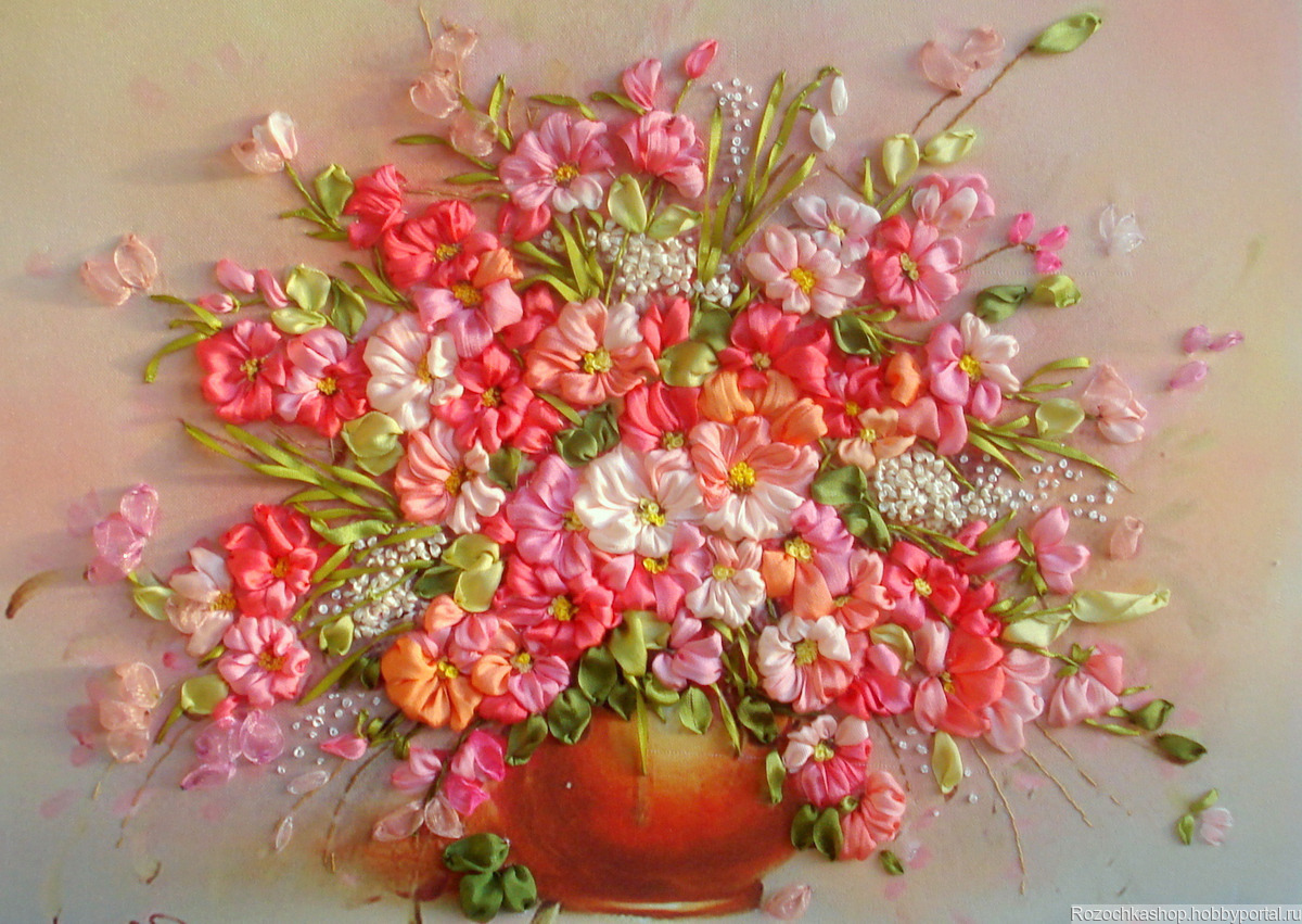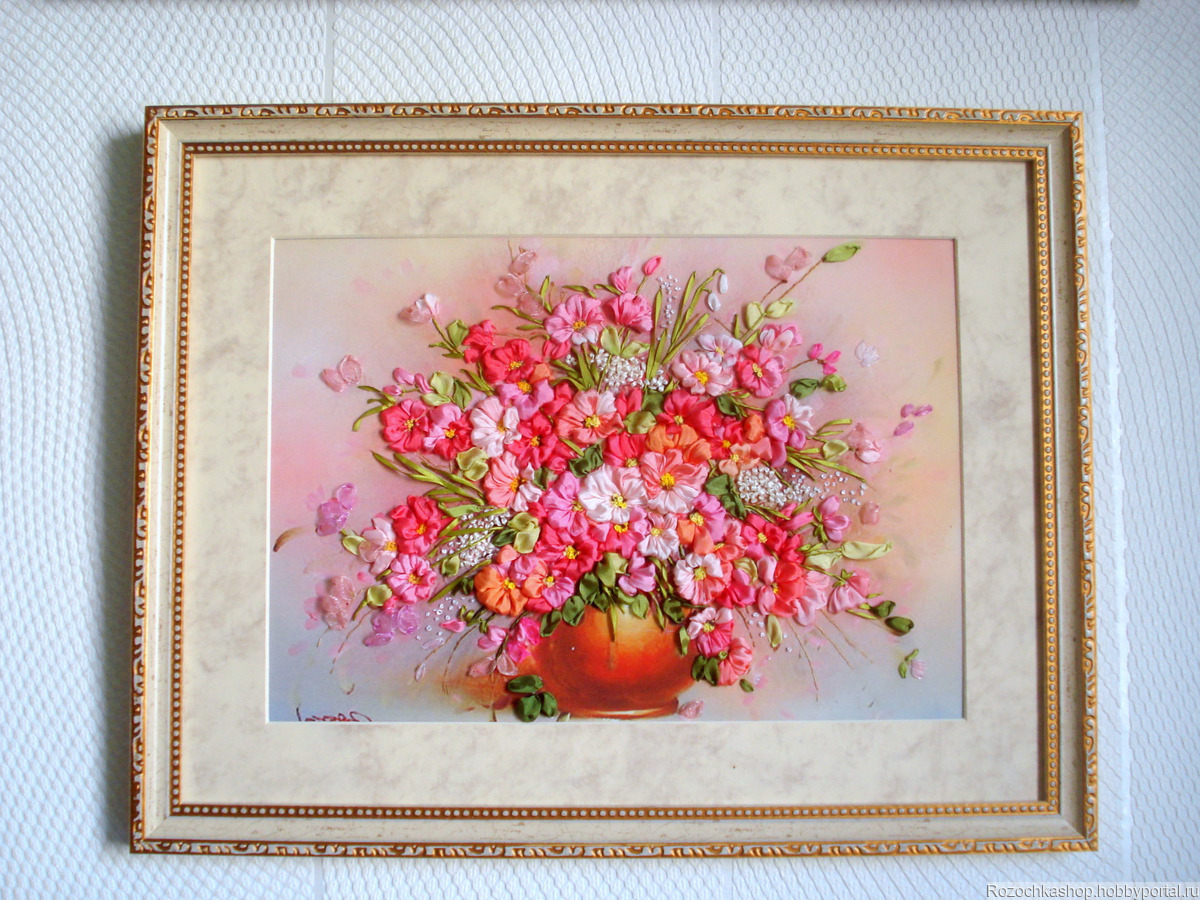 Вышивка лентами послужит интересным дополнением интерьера вашего дома или будет оригинальным подарком по любому случаю для ваших родных и знакомых.