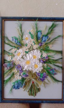 Летний букет - ромашки и колокольчик. 30*40. В рамке.