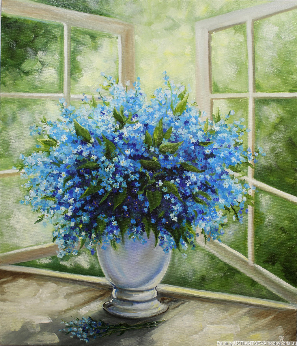 Незабудки. Холст на подрамнике. Масло. Р 60*70. Выполнена на заказ. Возможен авторский повтор.
