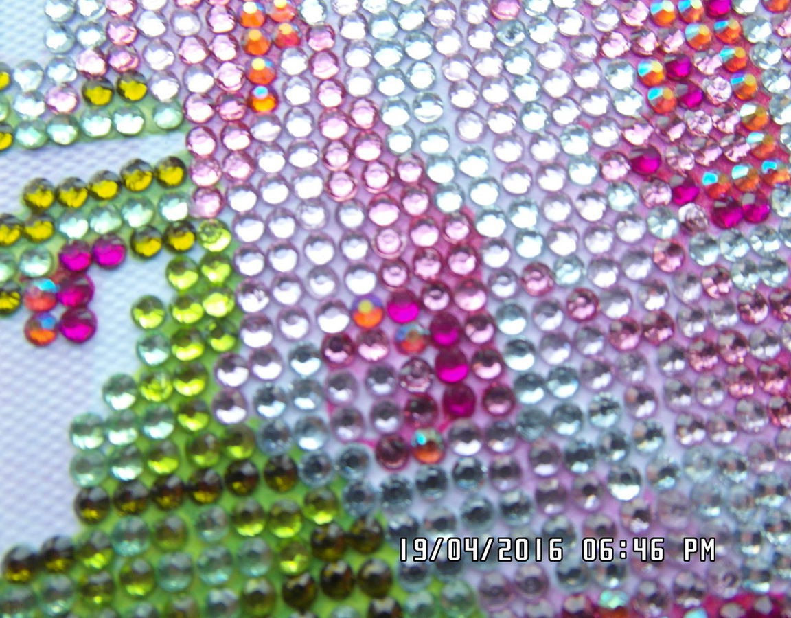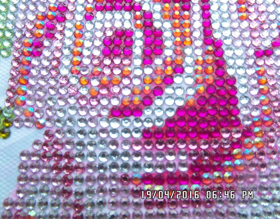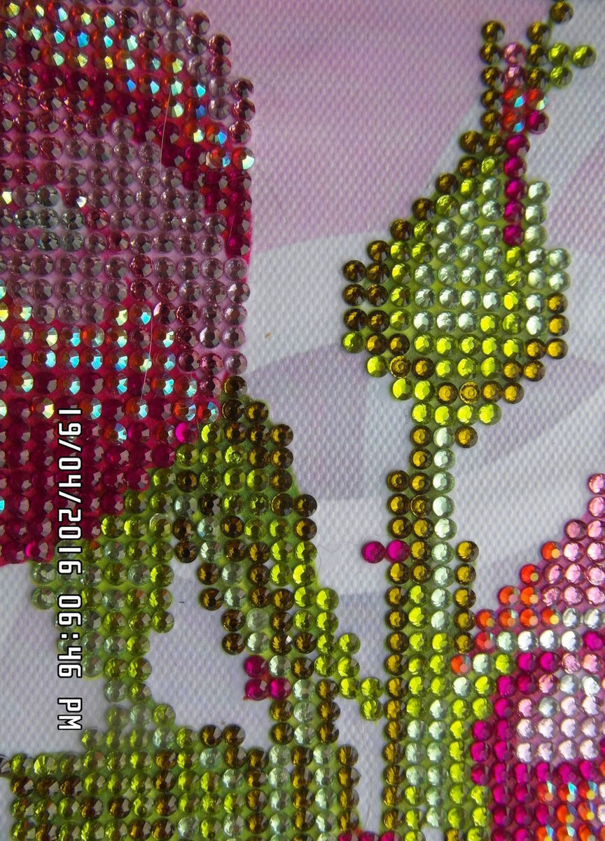 Картина выложена круглыми акриловыми стразами по полотну - основе с нанесенным 3D - изображением, схемой и клеевым слоем в технике алмазной мозаики. Стразы представляют собой небольшие камушки, круглой формы, которые имеют огранку, как у алмазов. Такая форма страз, способствует игре света на готовой картине, что делает готовые работы «живыми».