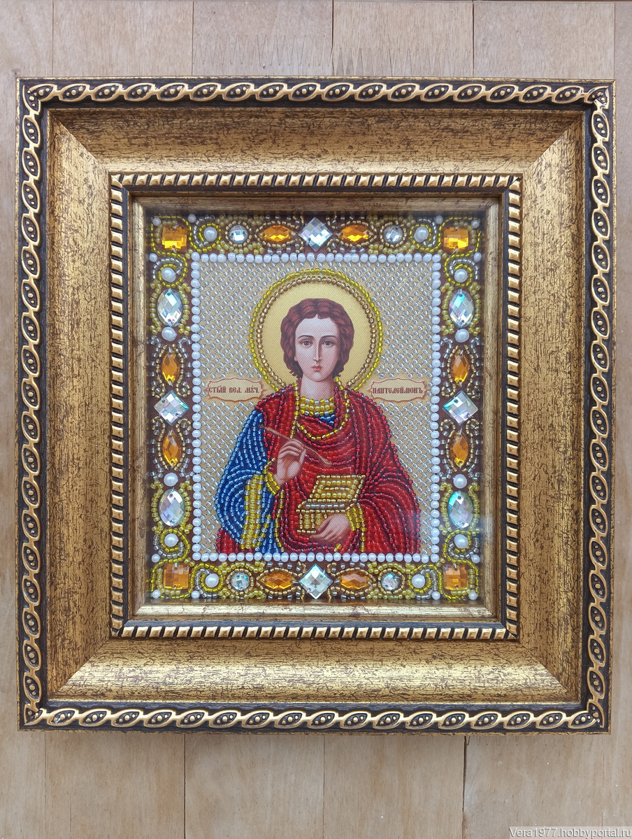 Икона вышитая бисером, с добавлением камней, в багете под стеклом