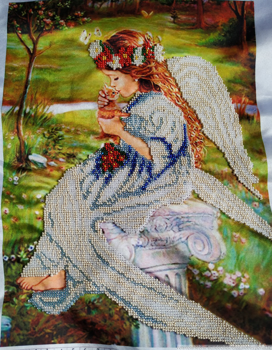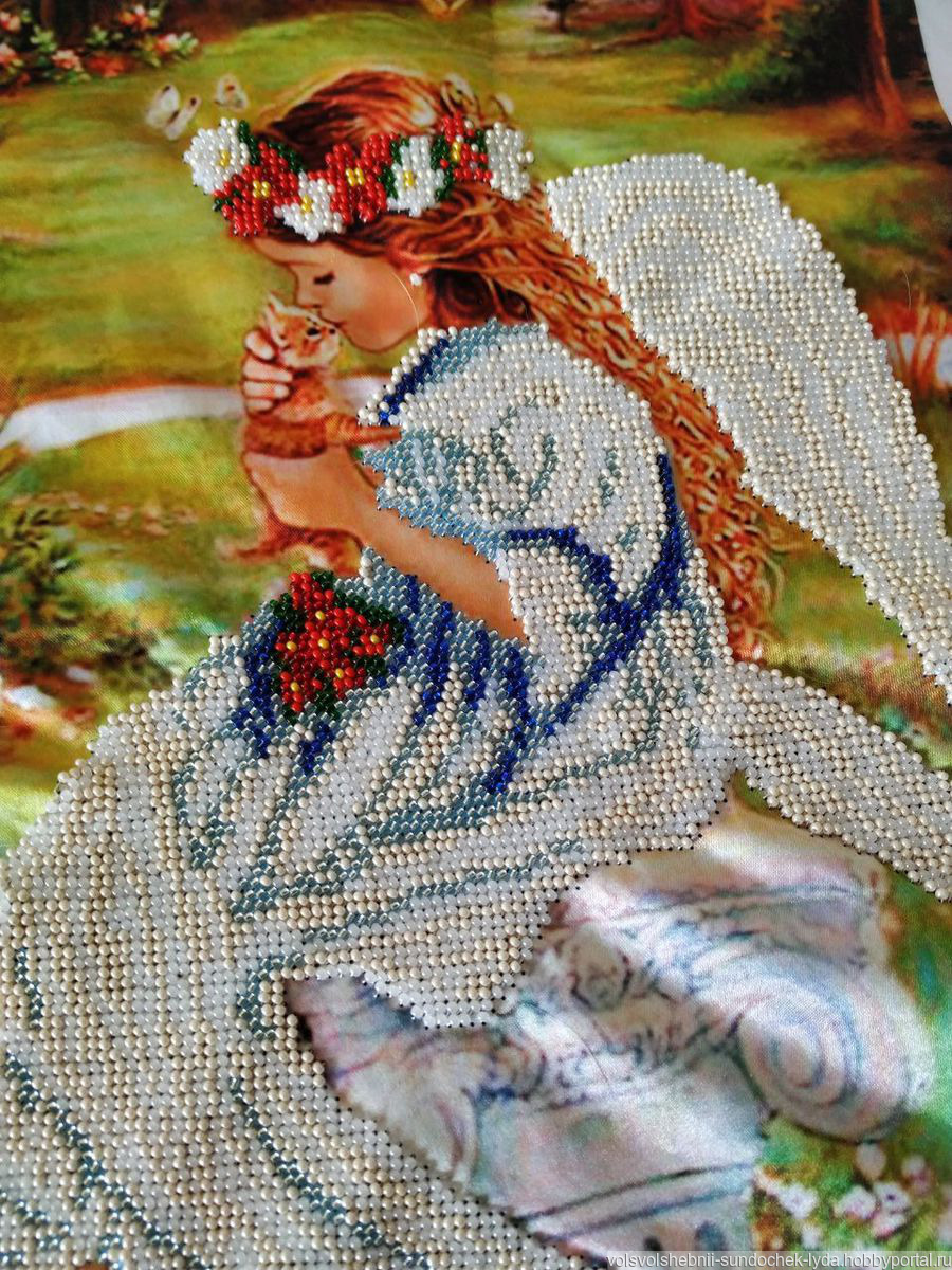 Предлагаю Вашему вниманию картину «Ангел с котенком» вышитая бисером, частичной зашивкой, ткань габардин проклеенный флизелином, размер готовой работы 35 см Х 26 см, оформить в багетную рамку можно на свое усмотрение. Картина украсит Ваш дом и внесет в него нотки тепла и гармонии. Станет незабываемым подарком к любому празднику для родных и близких.