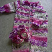Вязаный костюм для девочки из полушерстяной детской пряжи