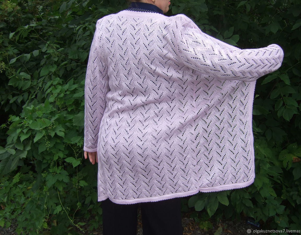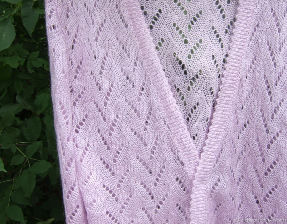 Ажурный удлиненный кардиган из пряжи с мохером. Связан узором веточки, легкий, ушло 270 гр пряжи, и теплый. Готовая работа. Длина по спинке 97 см, длина рукава 65 см, на размер 48-50.