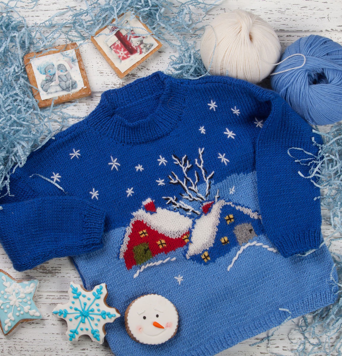 орнамент, Новый год, ручная работа, синий, подарок, вязаный, Мальчику, ребёнок, шерстяной