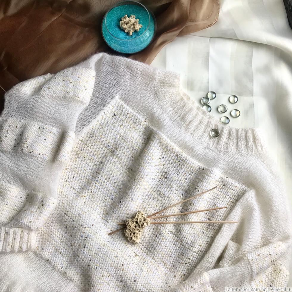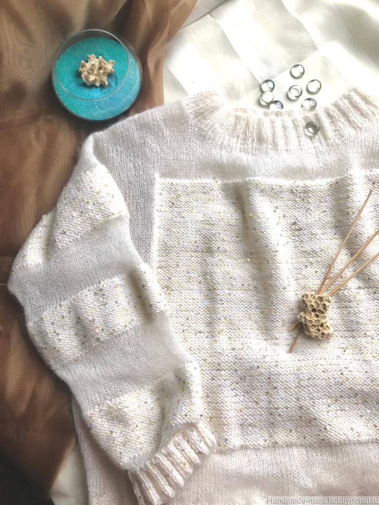 джемпер, джемпер вязаный, красивый джемпер, белый джемпер, джемпер из мохера, нарядный джемпер, джемпер с пайетками