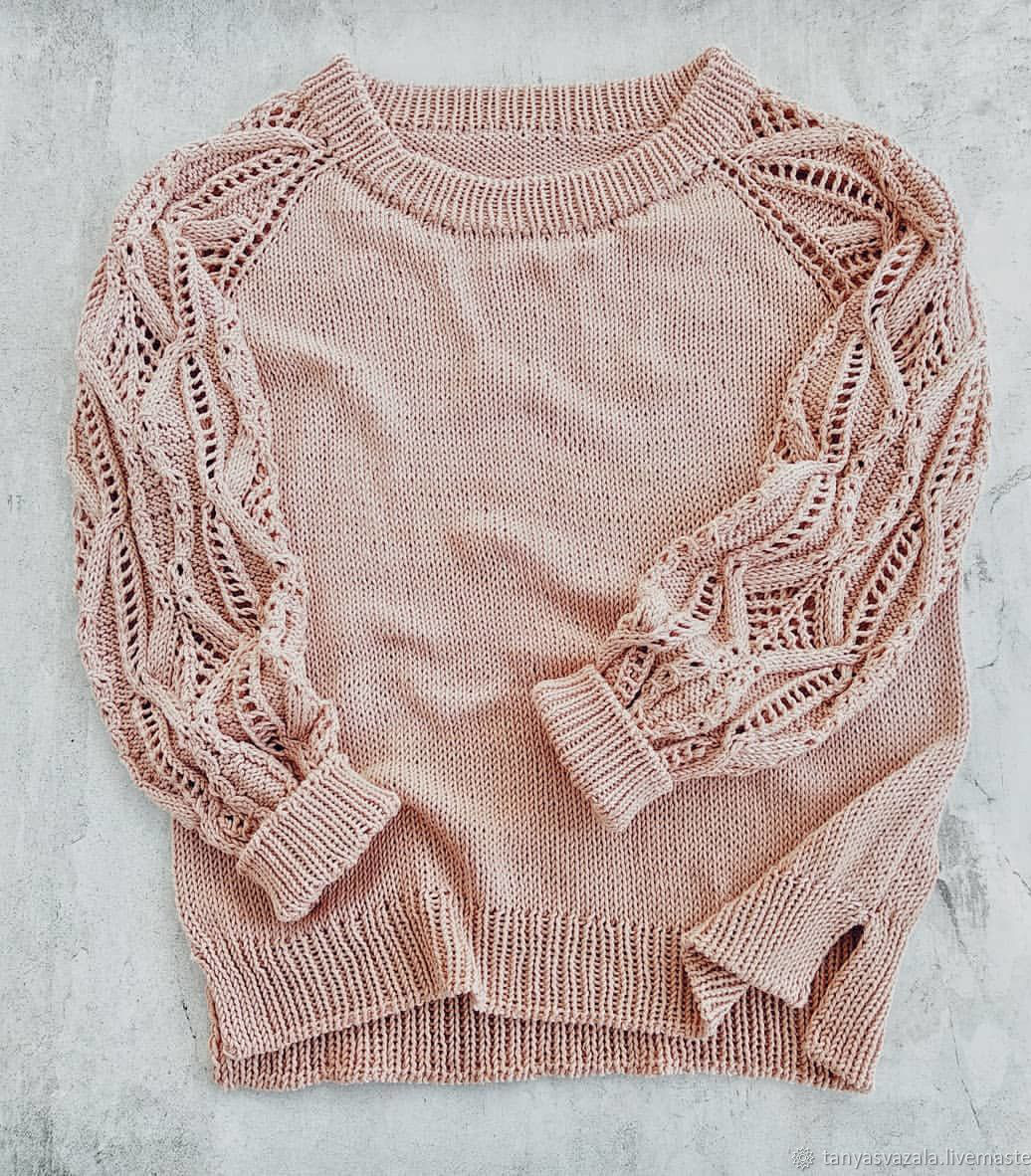 спицами, розовый, пуловер вязаный, женская кофточка, свитер спицами, пуловер женский, джемпер ажурный, Свитер ручной работы, модный цвет, женская мода, стильный свитер, тауп, хлопковы джемпер