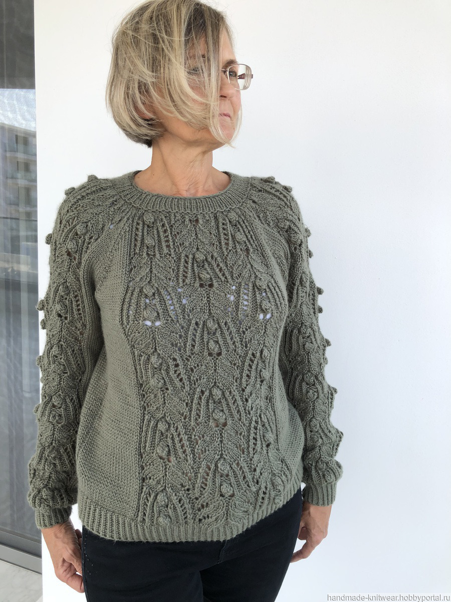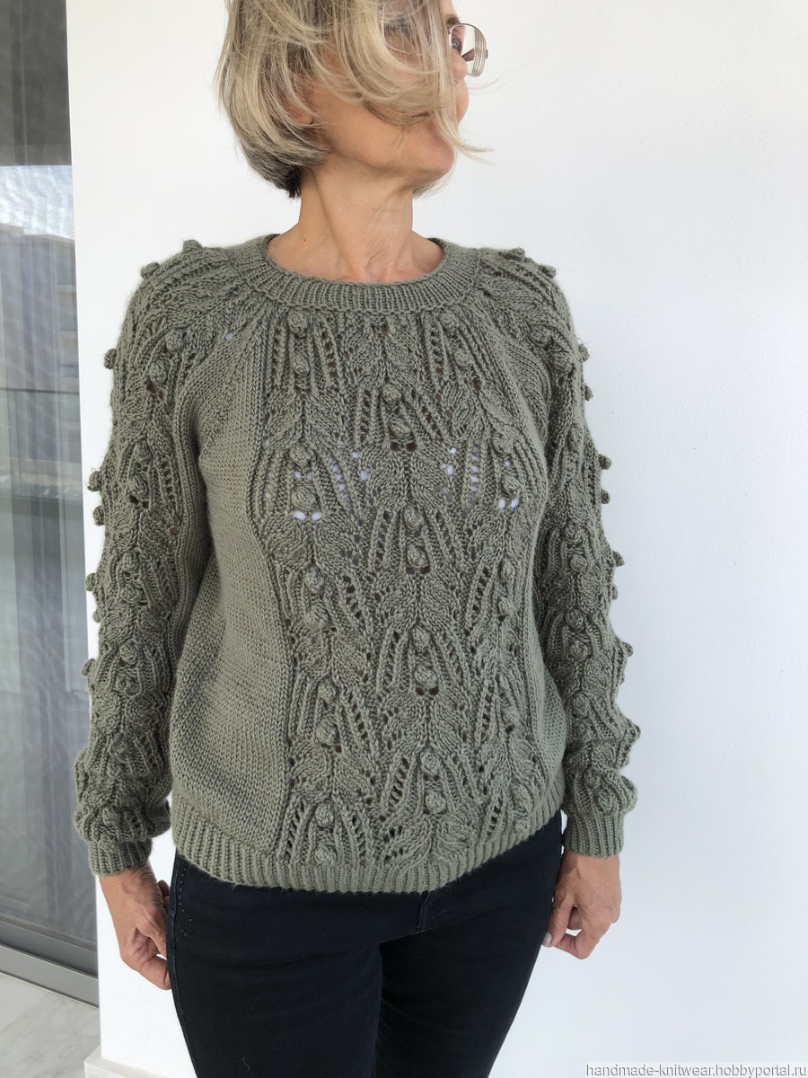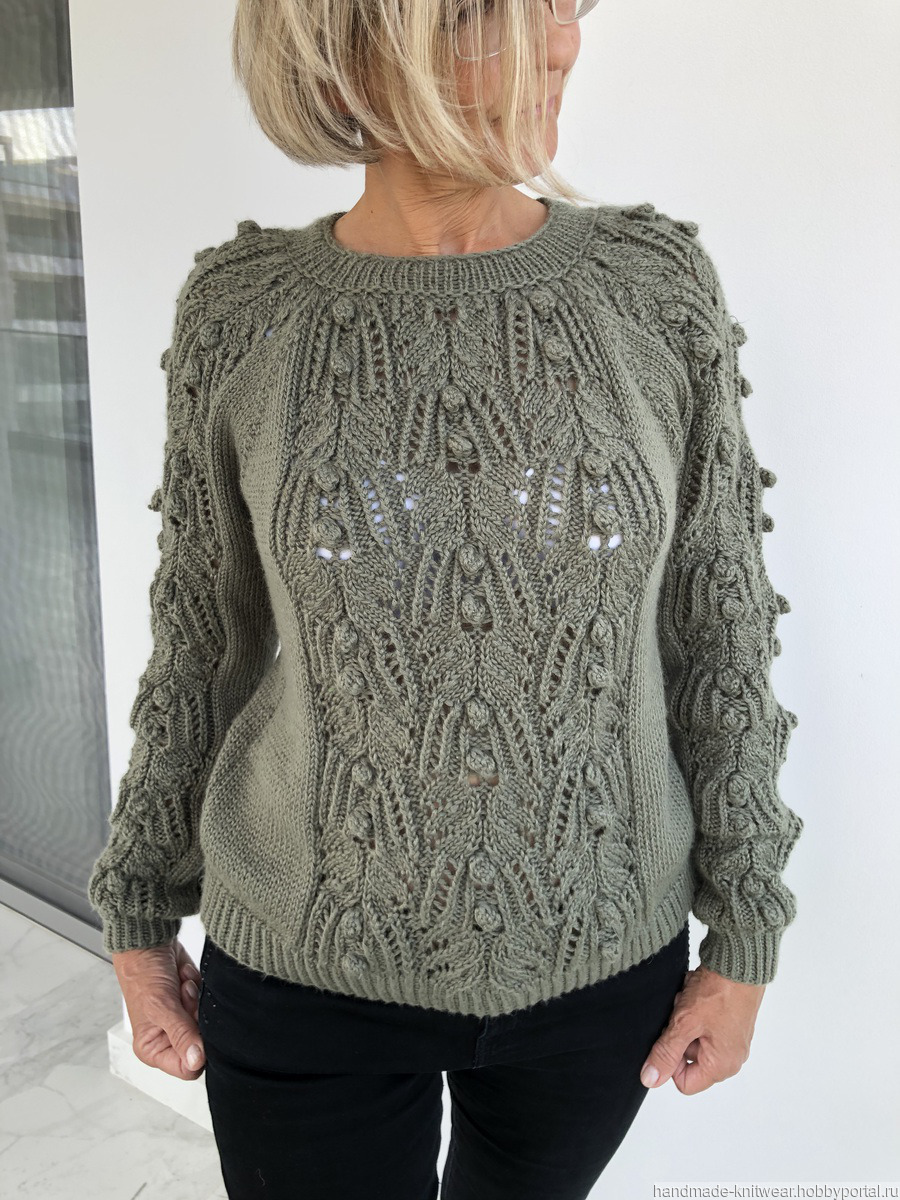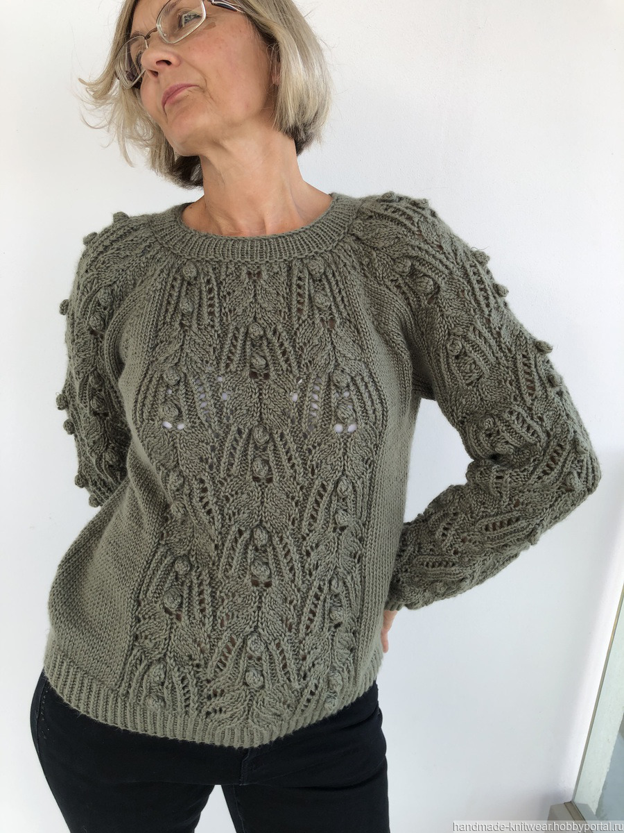 вязание на заказ, ручное вязание, вязаный свитер, оливковый, вязаный джемпер, вязаный джемпер ручной работы, японские мотивы, оливковый цвет, женский вязаный свитер, красивый вязаный джемпер, полушерстяной пуловер, ручное вязание на заказ, японский узор спицами