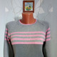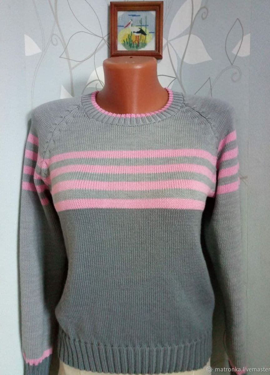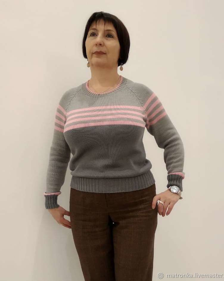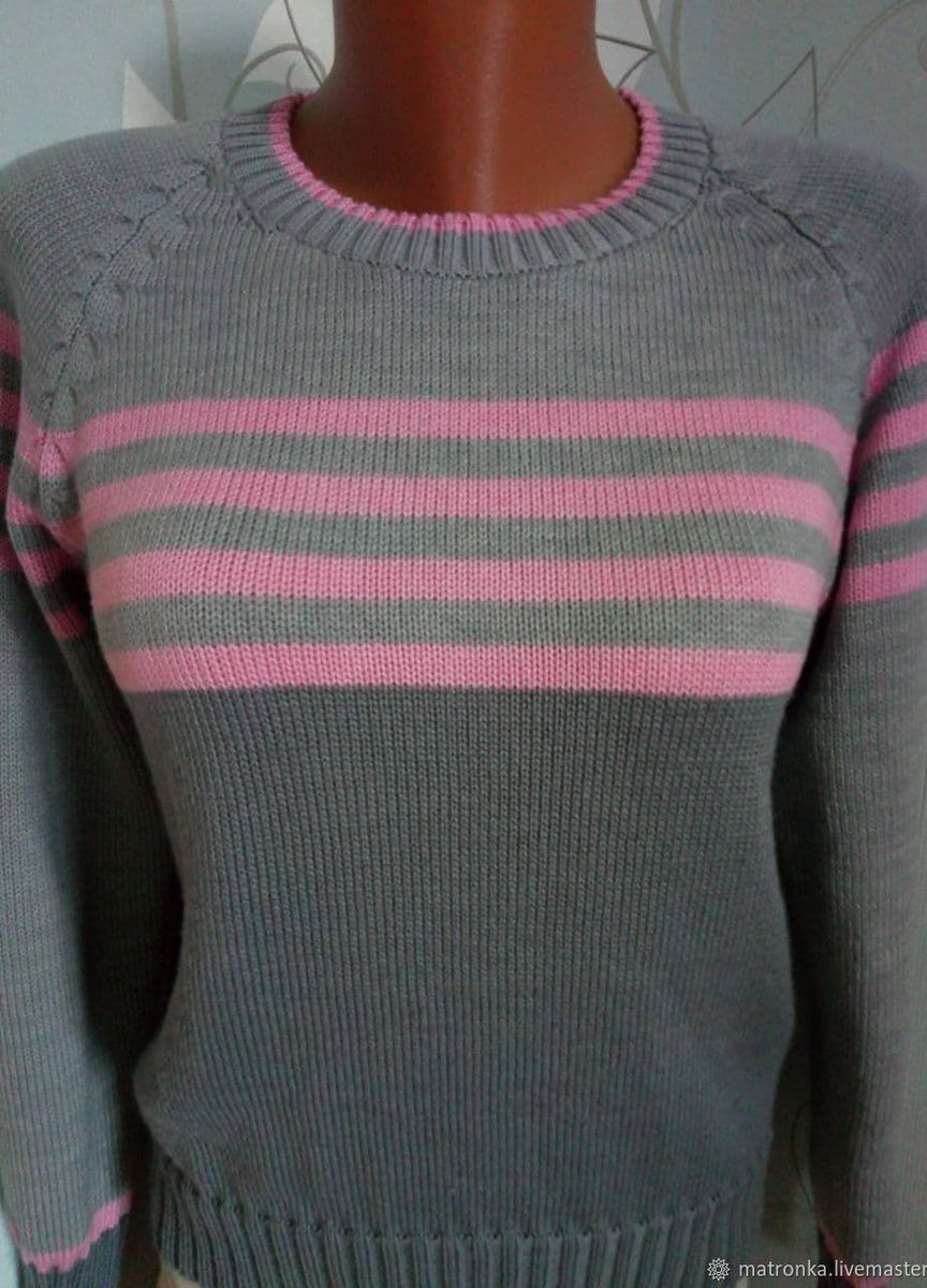 вязание на заказ, серо-розовый, реглан, вязание на машине, джемпер для девочки, джемпер для девушки, свитер серый, джемпер в полоску, простой свитер, базовый джемпер, короткий джемпер, джемпер к школе, розовая полоска, свитер серо-розовый