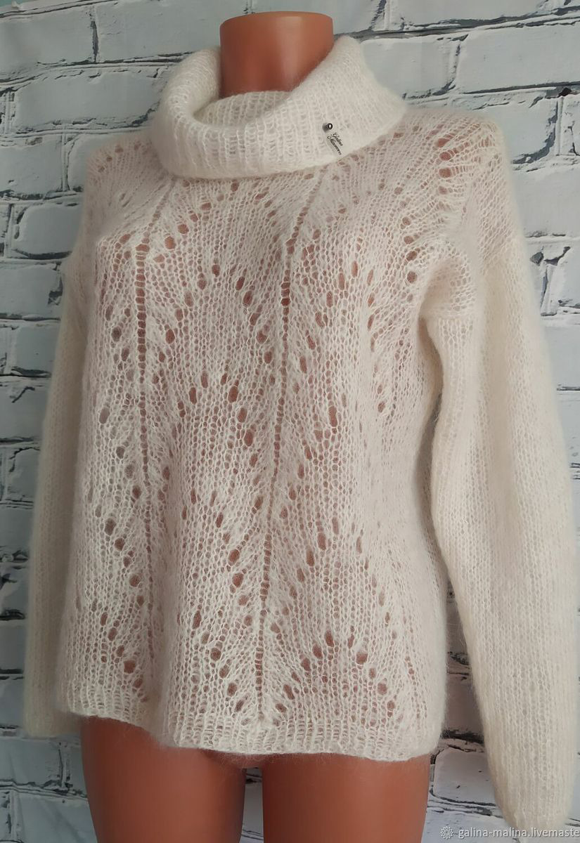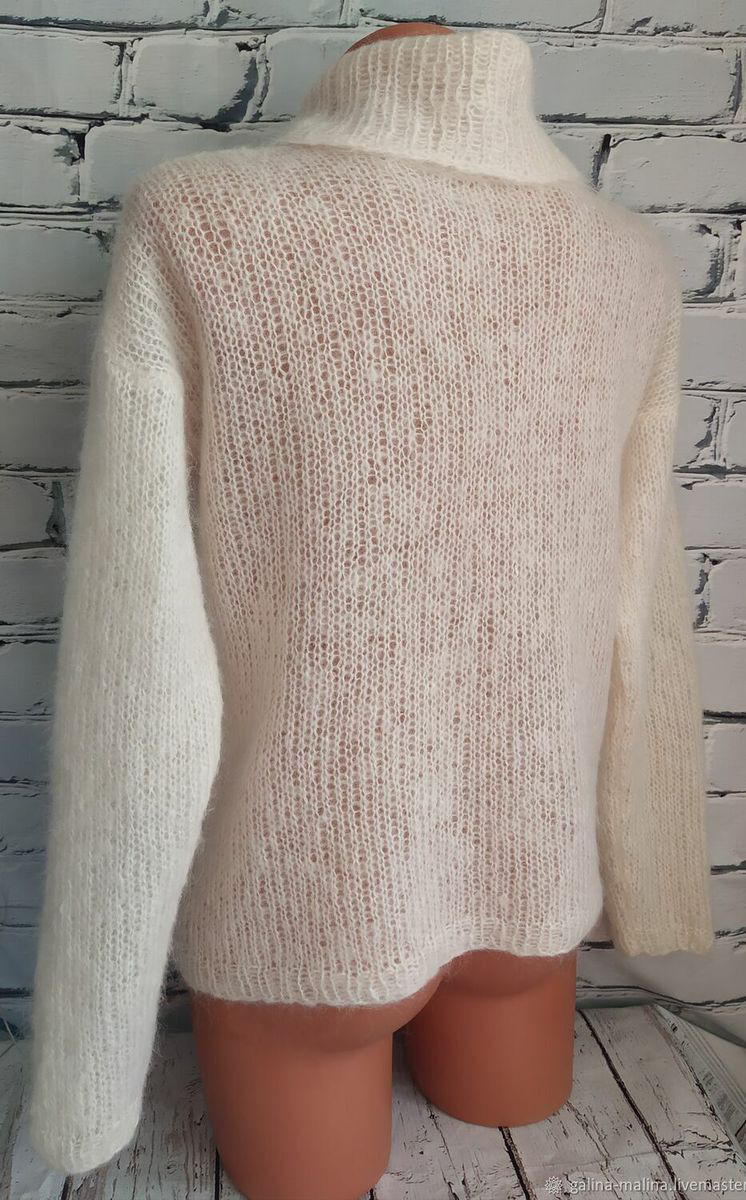 Джемпер изготовлен из кид мохера на шелке. Очень легкий и воздушный, а так же тёплый.