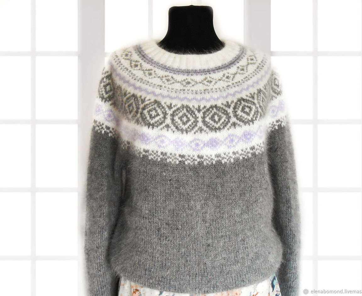 джемпер вязаный, свитер женский, свитер вязаный, свитер спицами, свитер теплый, жаккардовое вязание, джемпер женский, лопапейса, свитер с рисунком, жаккардовый свитер