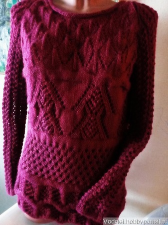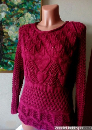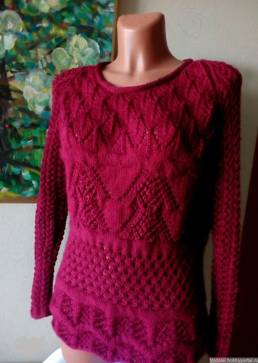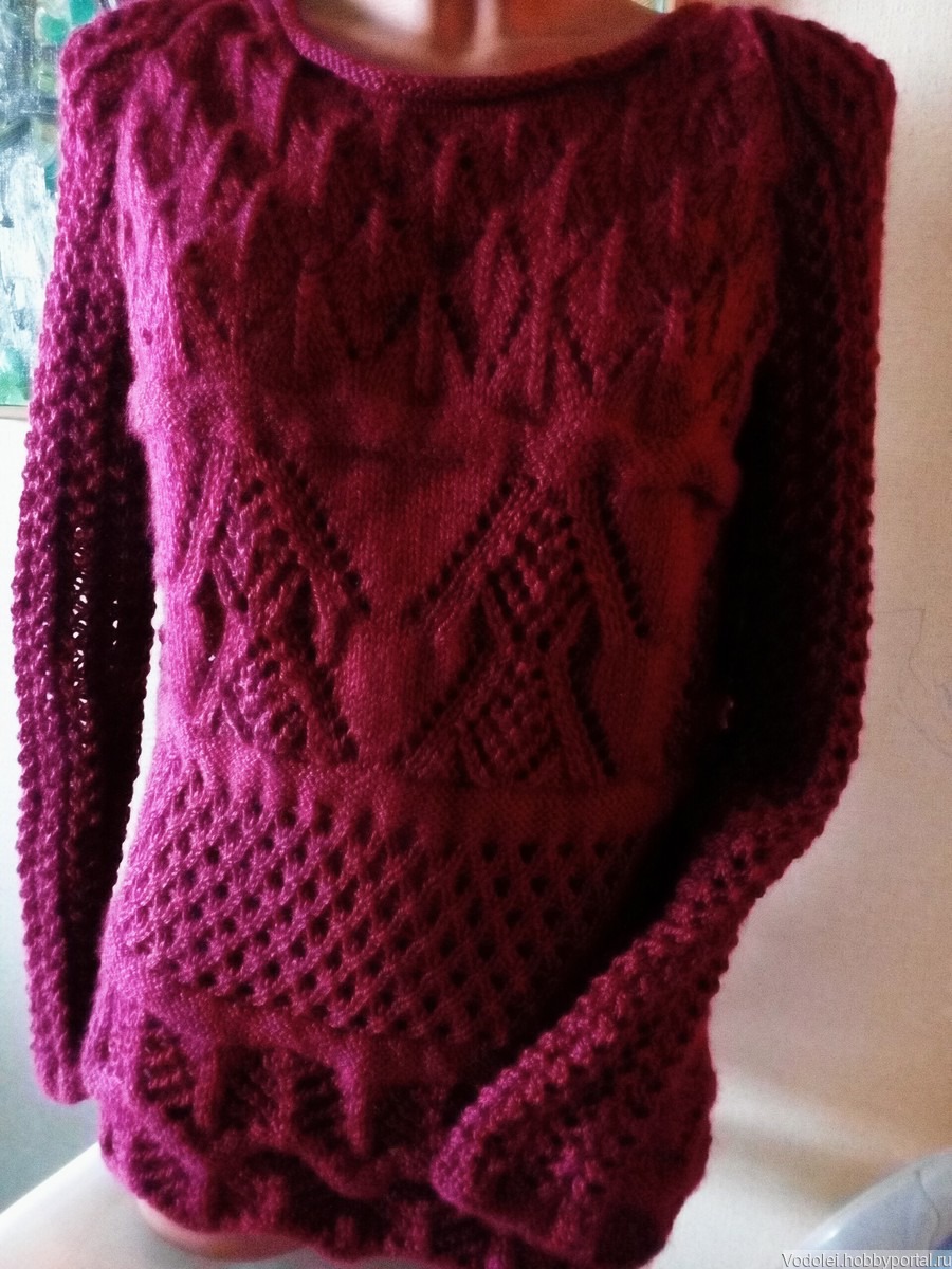 Джемпер женский связан из искусственной шерсти - акрила. Мягкий, очень теплый,цвета спелой вишни.