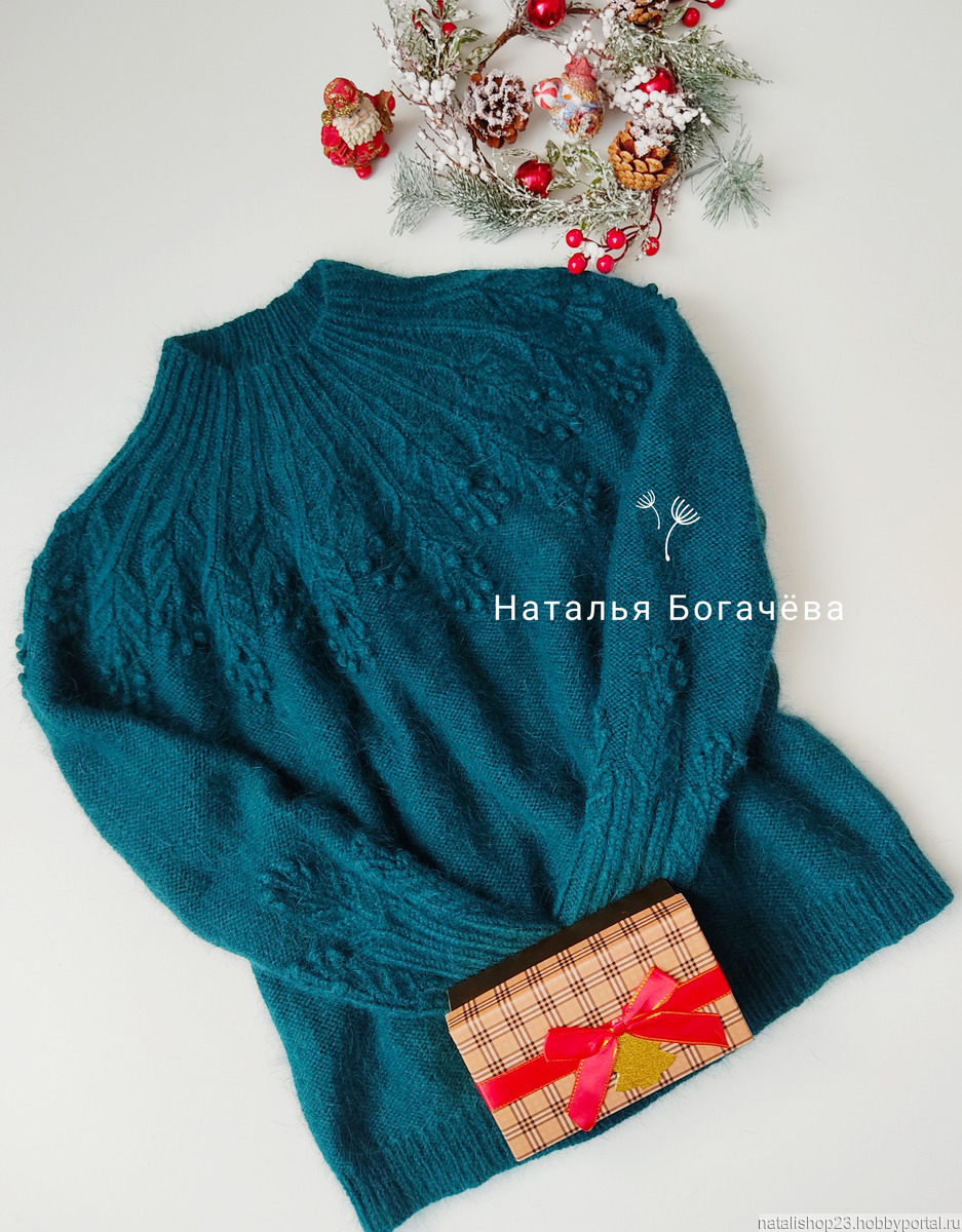 Джемпер изумрудный связан из мягкой, нежной и очень тёплой пряжи- ангоры. Идеально сидит на фигуре. Нет ни одного шва. Смотрится шикарно. Очень нарядный