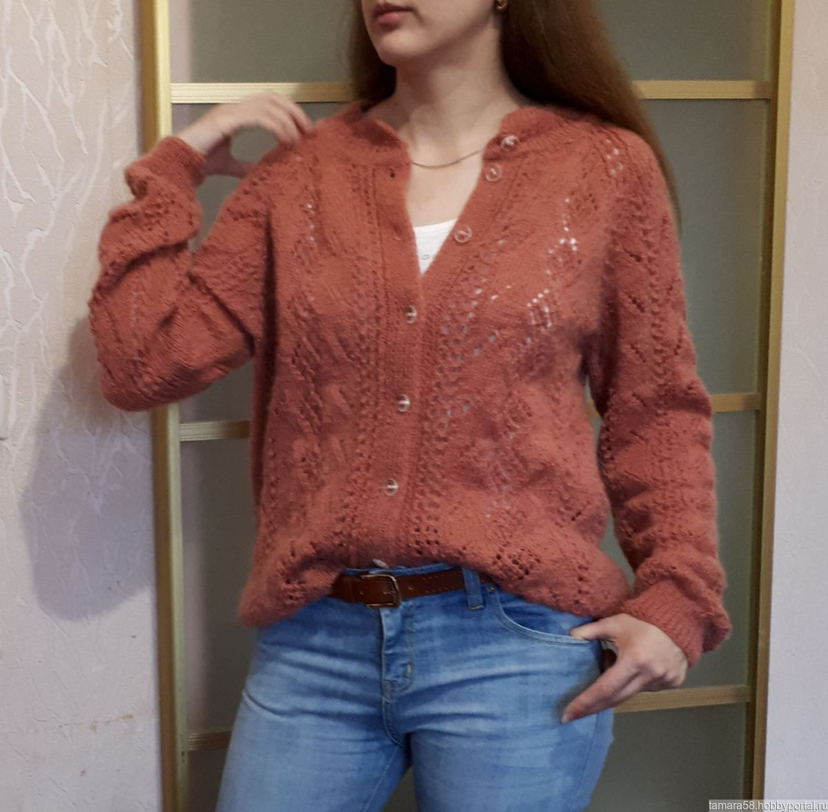 Кофточка легкая, тепленькая, приятная к телу.