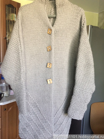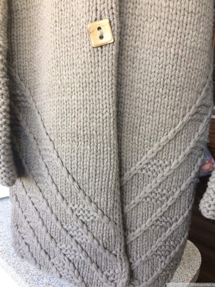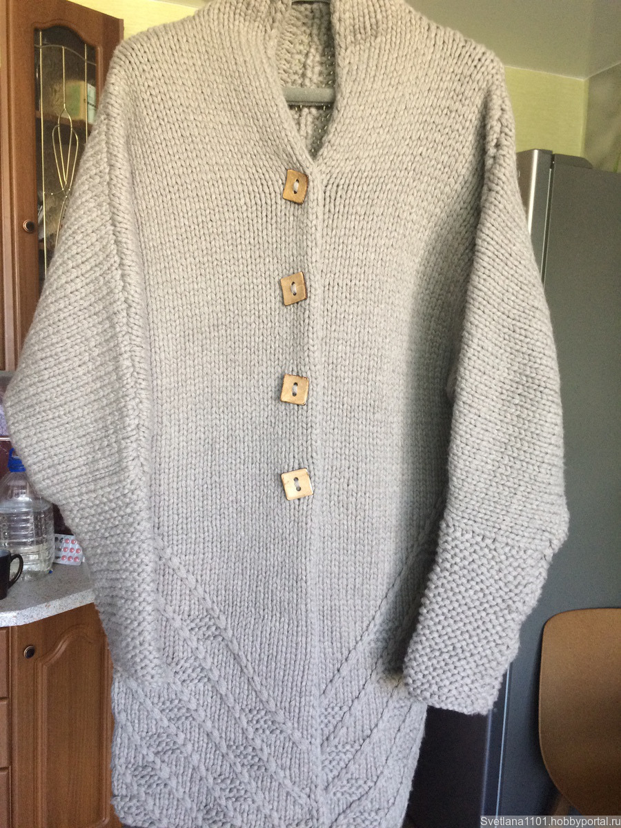 кардиган ручной работы, пальто вязаное, оверсайз, вязание спицами, handmade, мериносовая шерсть, крупная вязка, спущенное плечо