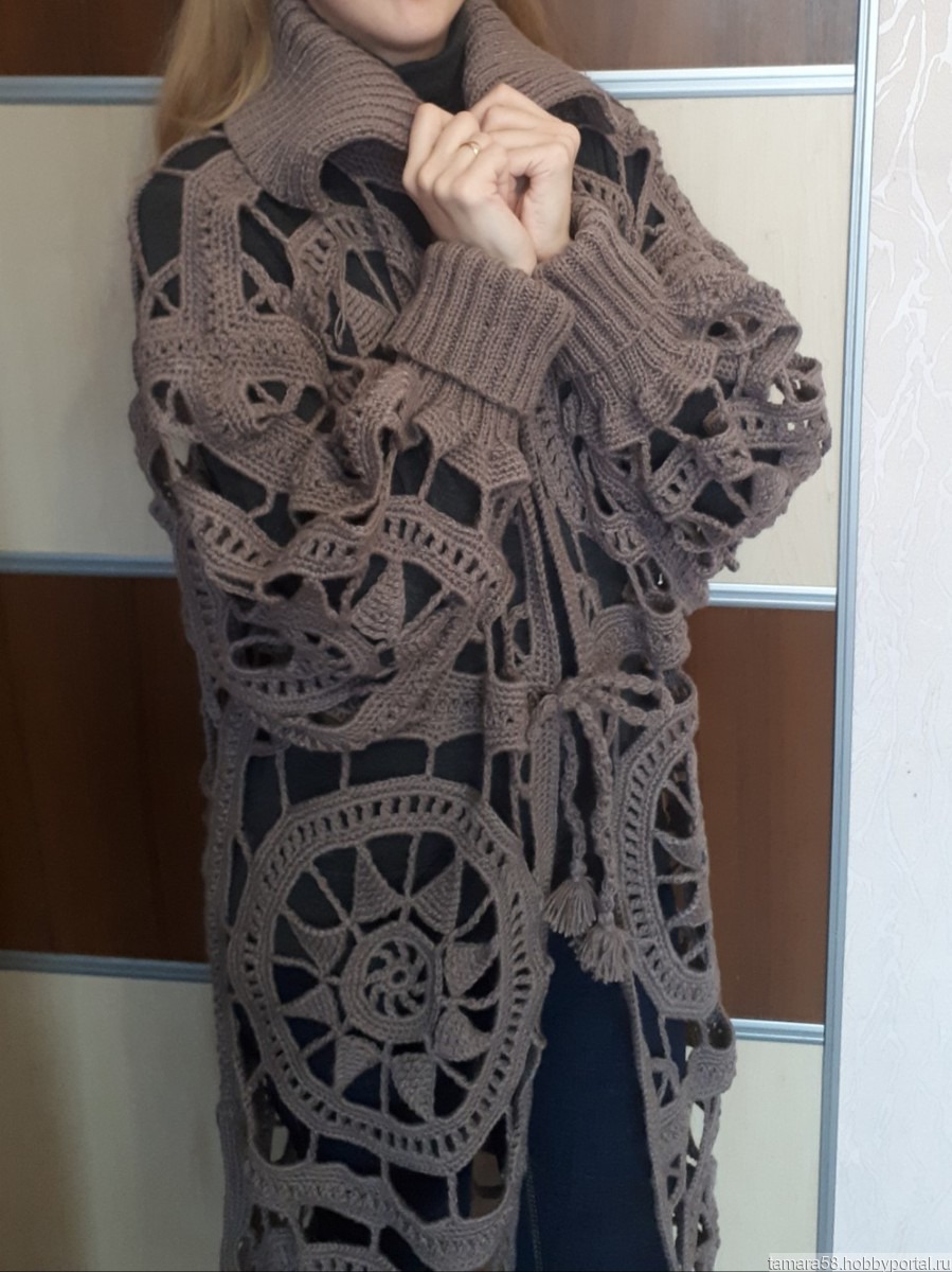 спицами, крючком, кардиган вязаный, ажурный, женская одежда вязаная, ко