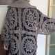Элегантный ажурный кардиган связан крючком и спицами из белорусской полушерстяной пряжи Ареола. Кардиган выполнен из квадратных мотивов, на рукавах и воротнике - резинка 2х2. Квадратный мотив 32 см. Размер 48- 50.