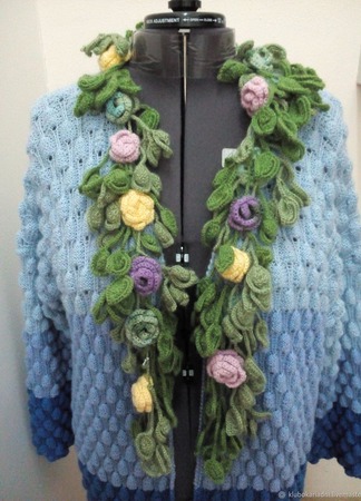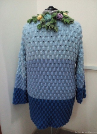 Кардиган связан из ангоры,узор пузырики.Нежный, легкий, теплый, невесомый подойдет для весенних дней и прохладных летних вечеров.