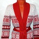 Вязаный кардиган на пуговицах с норвежским жаккардовым орнаментом. Широкая планка застегивается на 4 пуговицы. Цена указана за готовое изделие.
