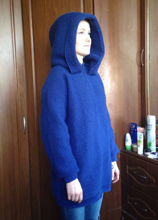 вязание на заказ, синий, кардиган женский, кофта вязаная, кофта с капюшоном, вязание для женщин, кофта вязаная спицами, вязаный женский кардиган, женская вязаная одежда, женская кофта с капюшоном