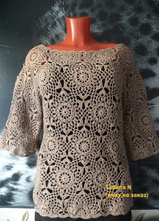 Представленная Вашему вниманию на фото кофточка связана крючком в технике сцепного кружева из натурального хлопка.