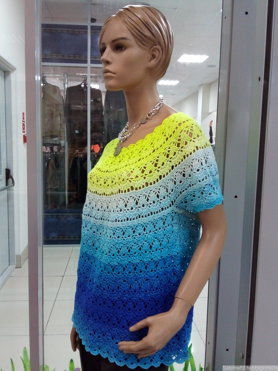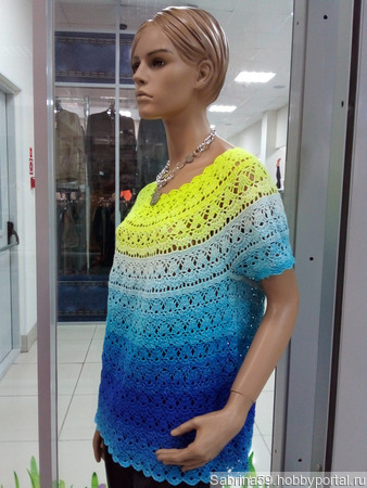 Летняя кофточка для женщин, ценящих красоту и комфорт. Изделие выполнено из турецкой популярной пряжи YarnArt " FLOWERS".Вещь цельно вязаная с круглой кокеткой. Очень яркие оттенки лета, солнца,