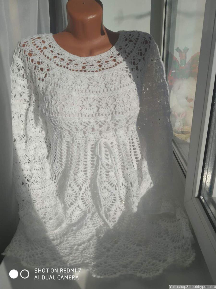 туника, туника вязаная, туника крючком, туника вязаная крючком, туника летняя, туника ажурная, туника женская