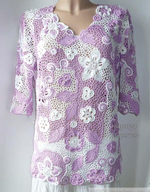 Нежная вязаная блузка крючком в технике сцепного кружева. Блузка была выполнена на заказ.